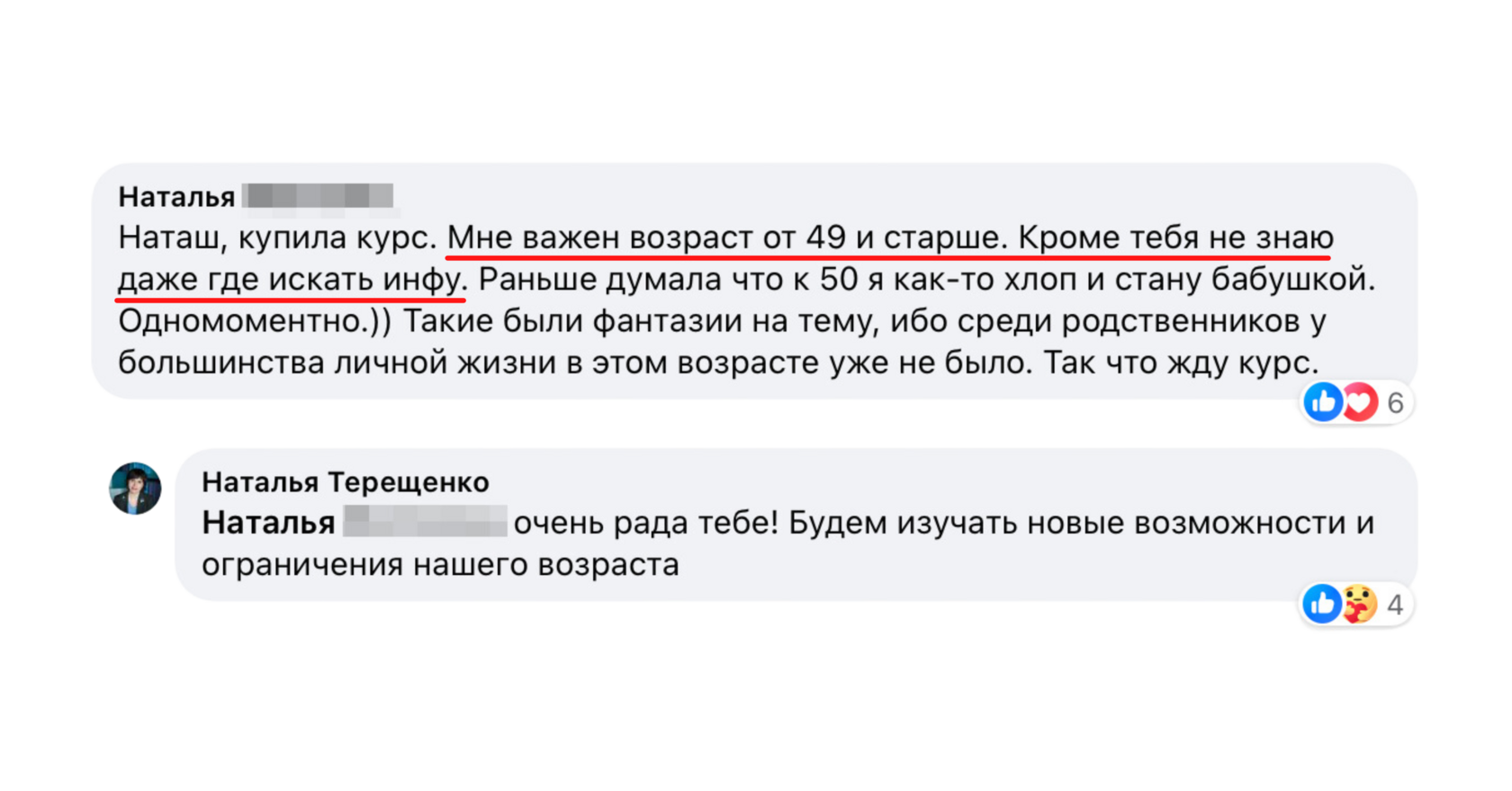 Спасибо большое за этот курс! Завершение курса совпало с завершением большого этапа в жизни - расставалась с целой группой людей и не проскочила этот момент, а прожила. Благодарна за безопасную и доверительную работу. Ответы на многие вопросы получила от Натальи в ходе курса быстрее, чем сама успела задать. Кое-что все-таки не решилась озвучить, но мысленно положила в копилку вопросов и тем для работы с психотерапевтом-женщиной (очень пришелся по душе совет, что наступает пора для работы с женщиной, мой психолог мужчина мне очень помог, но есть темы, которые я не могу с ним обсуждать, поняла это на курсе). В ходе этих недель очень внимательно просмотрела, скажем так, свою сексуальную историю))), много всплыло моментов и тем для обсуждения с партнером и для понимания самой. Считаю это очень большим результатом - как будто в удовольствие вскопала грядку и перед засевом оцениваю, что еще повыдергивать, что оставить, чем подкормить почву. Так что все только начинается! Следуя совету (спасибо за него!) ориенитроваться на то хорошее, что есть, поняла, что многие вещи уже у меня проработаны, и это хорошо))). Смогла увидеть некоторые слепые пятна - только осознала, например, что стыда во мне много - больше всего на тему того, что хочу что-то попробовать, но стесняюсь, ибо "с леди так не обращаются" и т.п. Прогресс пока в том, что смогла с юмором посмотреть на ситуацию, что мне стыд и некое "левое достоинство" дороже радости и удовольствия секса. Есть над чем работать дальше. Задел разговор про расстановку приоритетов - в мечтах и мыслях хороший секс занимает немало места, а в жизни мой партнер и я почти всегда отдаем предпочтение другому - уработаться или пусть наговориться по душам, но пока дойдет до дела, сил уже нет ни на что. Такие вот приоритеты). Очень благодарна за технические моменты - то, что раньше мне казалось загадкой или проблемой, оказалось проще - речь о рефрактерном периоде у женщин, частичном вагинизме/необходимости смазки/неудобных позах, и тем, что возбуждение в голове и в теле - не всегда одновременно приходят - эти моменты очень важны для меня, расслабилась сразу по нескольким пунктам. Спасибо за них! И вообще спасибо!