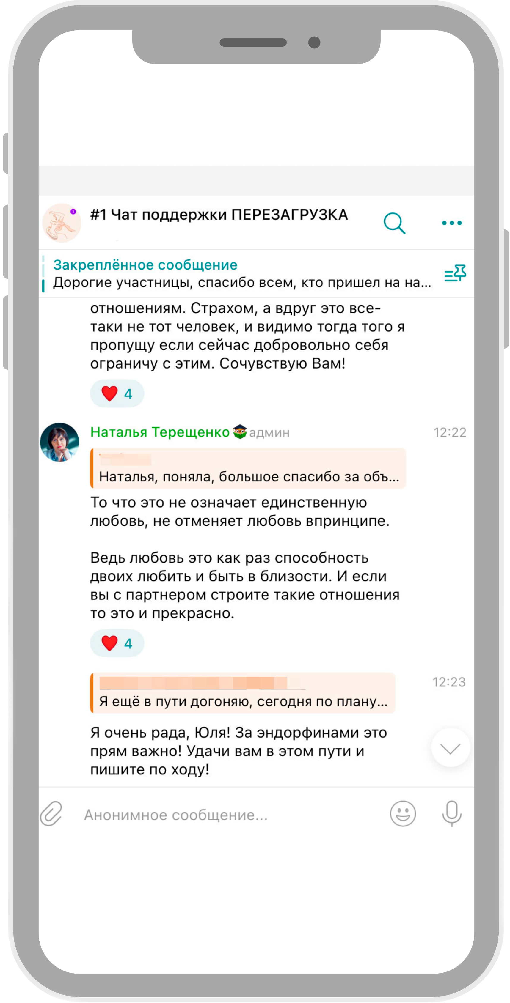 Наталья, мне сложно подобрать слова, чтобы выразить вам мою огромную благодарность. Ещё сколько-то месяцев назад, я чувствовала себя в тупике. Пожаловавшись на вагинизм гинекологу, получила совет почаще заниматься сексом и мол все само пройдёт. А мне каждая попытка была пыткой. Любимый начал отдаляться. И вдруг фейсбук послал мне вас. На третий поток попасть не получилось, и я очень очень ждала четвёртый. Вагинизм ушёл после третьего вебинара... это было чудо. Я почувствовала во время сканирования как у меня там разжимается... так просто. Это было главное, а того что я получила сверх этого не перечислишь: женскую поддержку, понимание, принятие, больше смелости в сексе, больше уважения к себе и своему телу, чувство самоценности и ещё много много всего. Ощущение, что я шагнула в другое измерение и пока только делаю первые шаги, но мне здесь очень нравится.